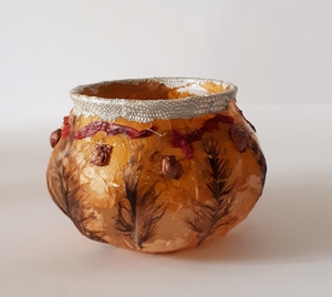 Vasen van glas bewerkt met japans papier en natuurmateriaal.